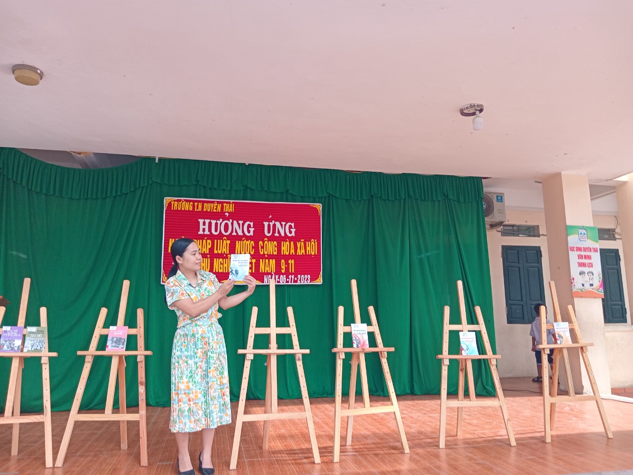Ảnh giới thiệu sách tháng 11 do nhân viên thư viện và học sinh trường TH Duyên Thái thực hiện